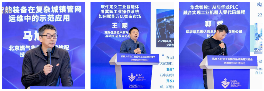 在领域企业的主题演讲环节中,企业嘉宾围绕核心技术创新与产业应用分享了关键观点。其中,北京燃气集团研究院输配技术研究部部长马旭卿的实践分享极具行业参考价值,面对集团3.57万公里管线、834万户用户的庞大运维需求,北京燃气针对性研发出带缆式不停输内检测机器人等三套核心智能装备,有效破解了燃气运维中的效率与安全难题。翼辉信息技术有限公司基础BU研发中心总监王翾演讲内容聚焦“软件定义工业智能体”,重点介绍了其自主研发的SylixOS工业操作系统,这套原创的系统硬实时性突出,已落地机器人控制器、虚拟PLC等多场景,为智造市场提供核心技术支撑;深圳华龙讯达信息技术股份有限公司技术总监郭斌则提出“筑基、筑魂、赋智”战略,通过自研PLC与工控鸿蒙系统实现工业机器人零代码编程。