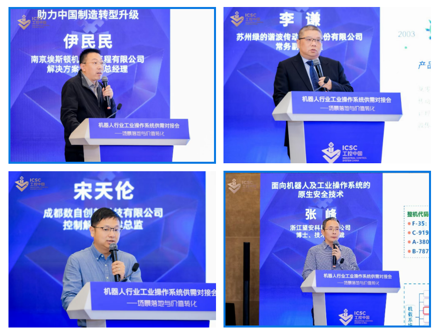 南京埃斯顿机器人工程有限公司解决方案行销部总经理伊民民、苏州绿的谐波传动科技股份有限公司常务副总经理李谦、成都数自创新科技有限公司控制解决方案总监宋天伦、浙江望安科技有限公司技术副总裁张峰分别发表了《重构自动化价值链路:iER.OS开启工业机器人全场景智能新时代》《机器人核心零部件更新及产业链上下游协同合作》《基于IEC61499的AIOSYS工业控制软件——让机器人工程编程像搭积木一样简单》《面向机器人及工业操作系统的原生安全技术》的主题演讲。彰显了国内企业在各自相关细分领域的技术硬实力。