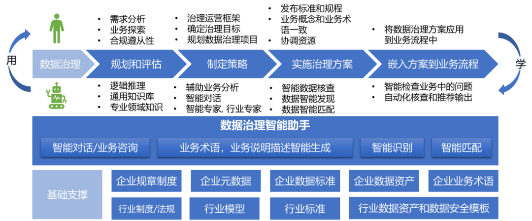未来数据治理体系建设将遵循“双向驱动、治理应用融合”的战略路径,以AI赋能的智能治理新范式为核心导向,深度集成人工智能技术于资产识别溯源、标准体系优化、质量动态管控、安全风险防控等全链条环节,推进治理能力数智化跃升。