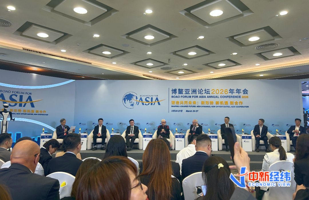 博鳌亚洲论坛2026年年会“人形机器人的进阶与飞跃”论坛。中新经纬薛宇飞摄