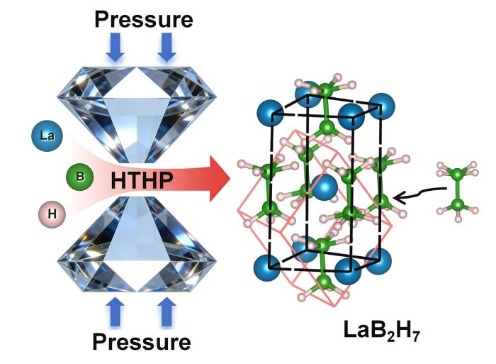 高压高温条件下合成LaB₂H₇示意图。(吉林大学供图)