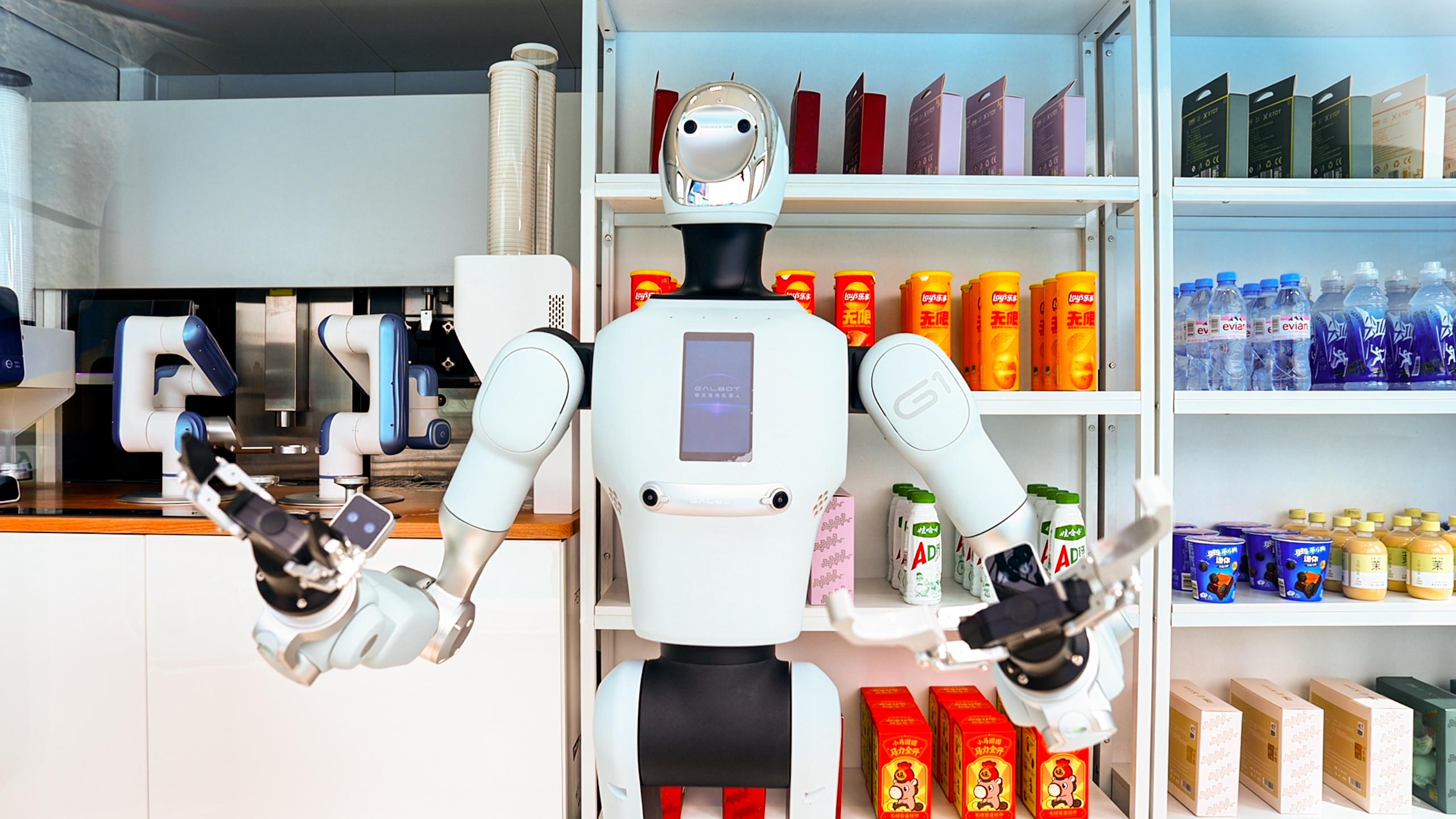 4月14日,哈尔滨新区极地公园内,一座科幻感十足的“银河太空舱”吸引了众多游客。只见游客在舱体交互屏上点击“卡布奇诺”,短短一分钟后,舱内的机器人便通过灵活的机械手从咖啡机中取出咖啡,稳稳递出,咖啡表面还印着专属的机器人拉花,萌趣又精致。这位“智能店员”正是今年央视春晚上与沈腾、马丽同台表演的银河通用机器人Galbot。