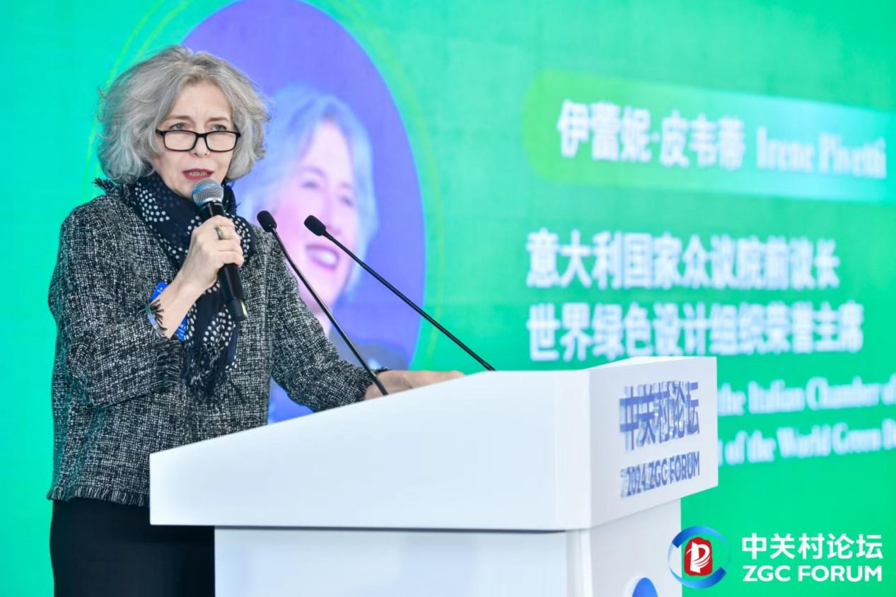 世界绿色设计组织荣誉主席、意大利国家众议院前议长伊雷妮•皮韦蒂(Irene·Pivetti)介绍了WGDO在绿色设计道路上的探索和成就。