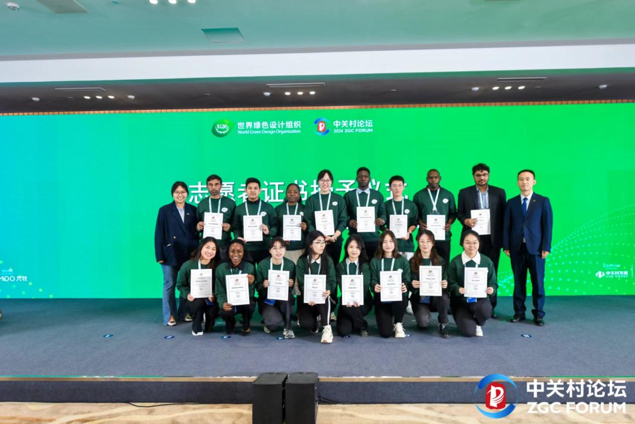 WGDO总干事助理毕树礼为本次参与和为论坛提供公益支持来自四个国家的青年志愿者们办发荣誉证书,鼓励更多青年加入绿色设计发展的行列。