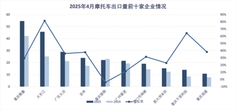 南美、非洲市场表现强劲数据显示,2025年一季度中国摩托车出口额实现两位数增长,其中31%的企业出口增幅超30%