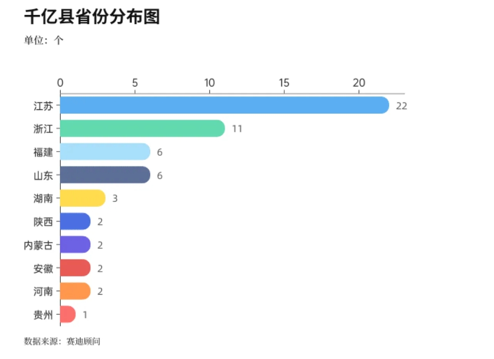 这些千亿县以全国1.3%的陆地总面积,贡献了全国7.8%的GDP,GDP总量达10.5万亿元,同比提升0.2个百分点。