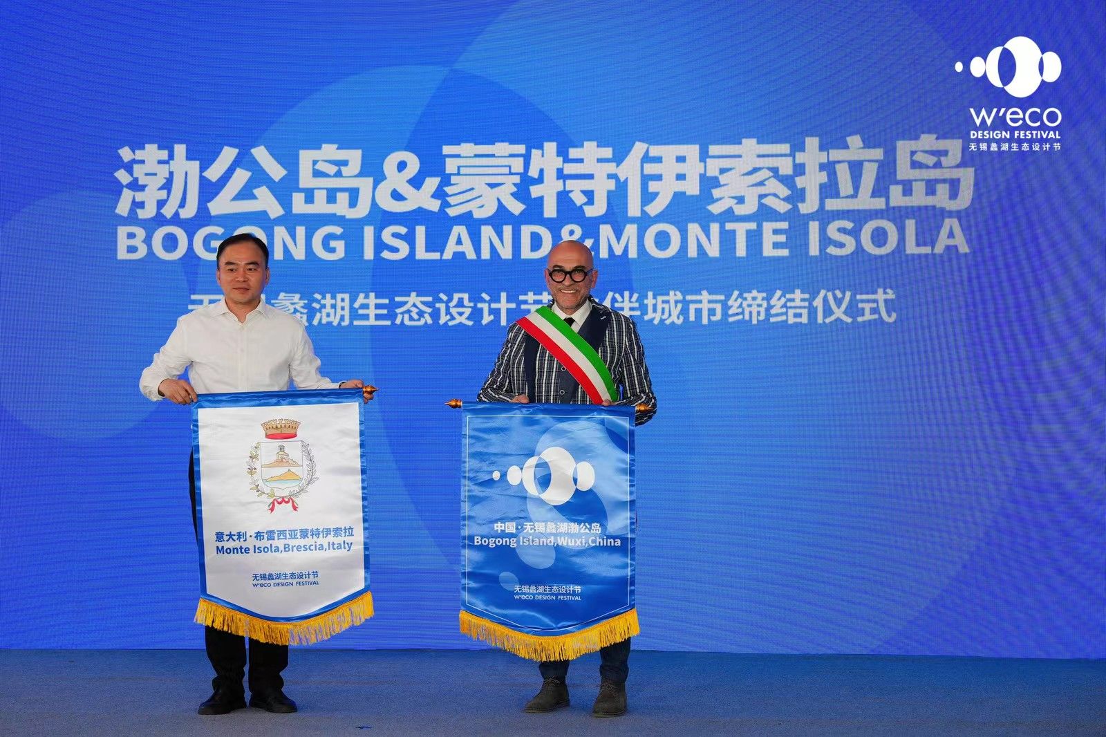 开幕式上,无锡蠡湖生态设计节与意大利布雷西亚蒙特伊索拉现场举行交旗仪式,缔结伙伴关系,双方将共同关注水生态、水经济,积极开展双城之间的国际合作。