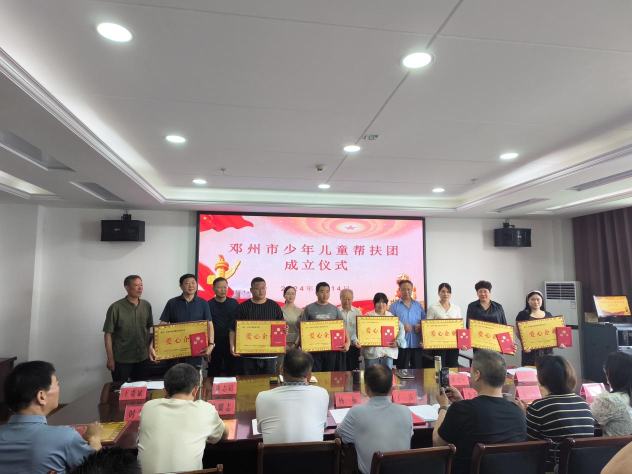 会议一致通过,由邓州市市工商联和关工委牵头,由爱心企业家联合成立“邓州市少年儿童帮扶团”,针对困难学生、农村留守儿童、优秀大学生在成长成才、身心健康、权益保护等方面的新情况新问题,开展多种形式的帮扶活动,使困境青少年生活有保障,失足青少年重返社会有帮教,有效促进青少年健康成长,促进乡村教育全面振兴,以实际行动向全社会倡导良好风尚,塑造社会主义市场经济条件下的新型道德观念,以善心义举情寄邓州的下一代。