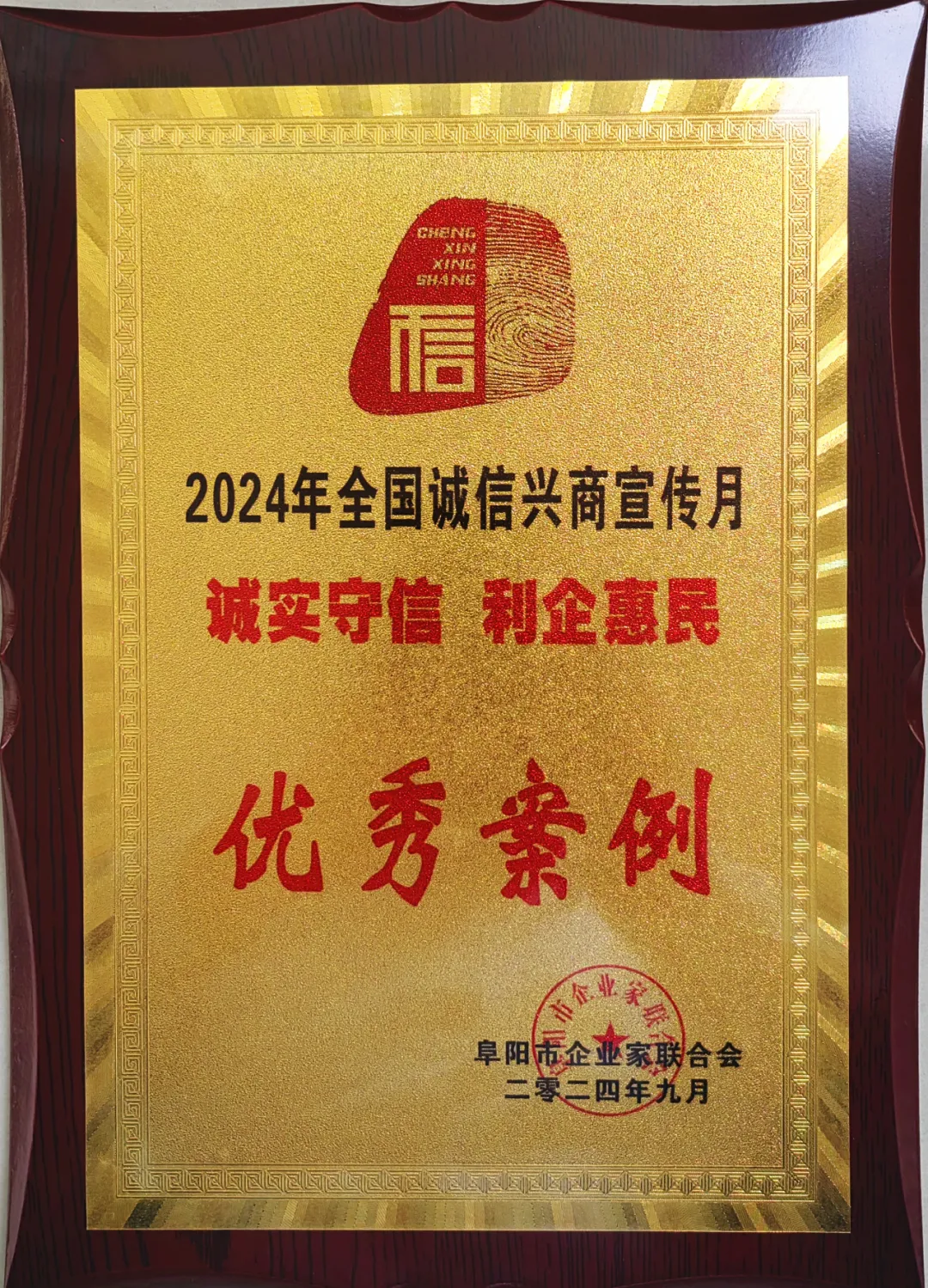 会上发布了50家诚信兴商优秀案例企业和联合诚信倡议书,全力推进阜阳市诚实守信品牌建设。金裕皖酒业获评2024年阜阳市诚信兴商优秀案例,是对公司长期以来诚信经营、求真务实精神的肯定;同时,也激励着我们积极发挥榜样的力量,引领白酒行业走向更加诚信、规范的发展道路。