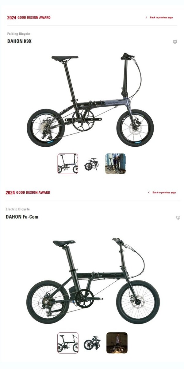 10月16日,日本GOODDESIGNAWARD(优良设计奖)公布2024G-MARK设计奖获奖名单,DAHON大行折叠自行车K9X、电助力自行车Fu-Com榜上有名。