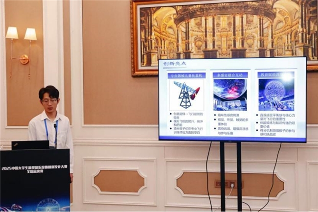 8月29日,2025年中国大学生新型游乐设施创意设计大赛(全国总决赛)在郑州方特举办。经过20位产学研用权威专家历时2天的专业评审,“磁悬浮式彩虹滑道”等27项作品获得一等奖,“华夏梦境—云端飞车”等29项作品获得二等奖,“星际探索飞行影院”等35项作品获得三等奖。