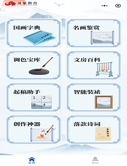 及象妙笔并非简单的知识聚合平台,而是围绕银发用户的学习习惯、认知特点与创作需求,系统构建的全场景、沉浸式国画学习体系。该体系紧扣国画学习的核心环节——“色彩、构图、创作”三大主题,将专业复杂的国画知识拆解为易于理解和掌握的模块,通过八大核心功能板块——国画字典、名画鉴赏、调色宝库、文房百科、起稿助手、智能装裱、创作神器、落款诗词——实现立体化呈现与全面支撑,真正实现从理论积淀到动手实践、从基础笔法到独立创作的无缝衔接。