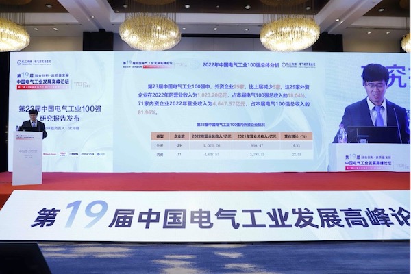 2023年11月23日,第19届中国电气工业发展高峰论坛暨“第23届中国电气工业100强研究”发布会在北京举办。