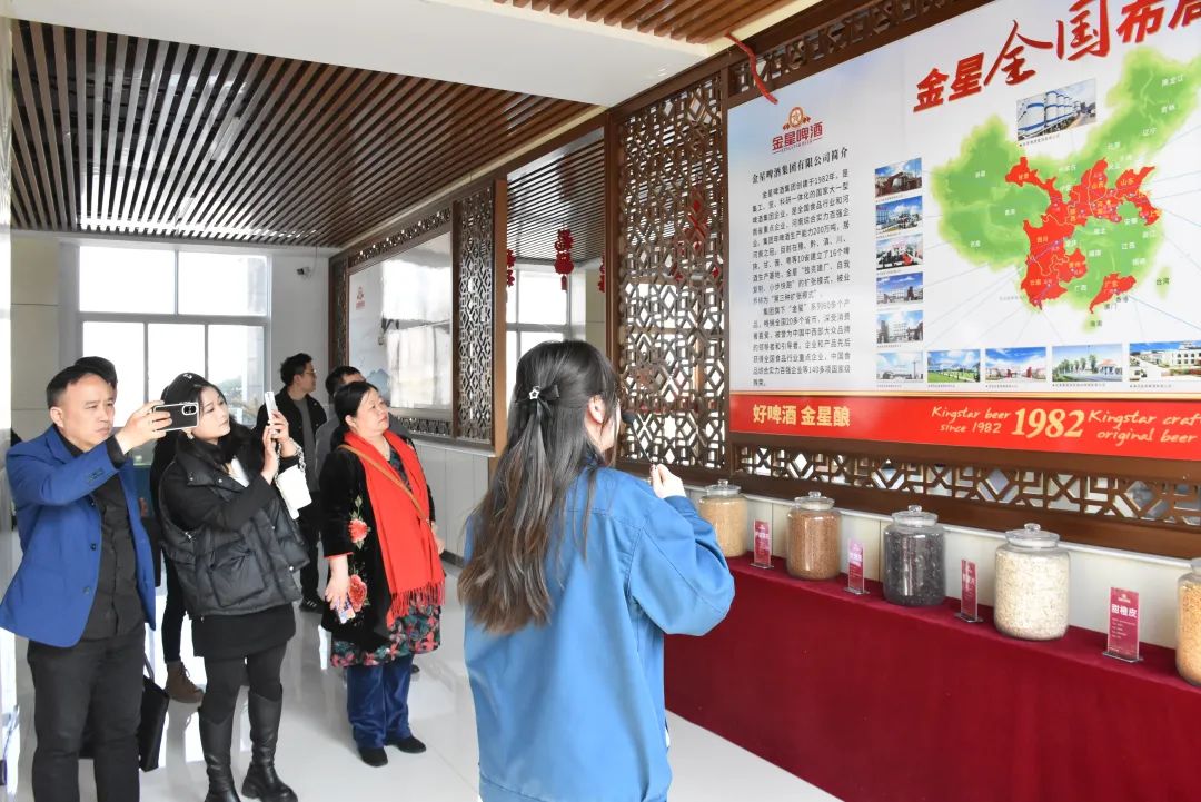 金星集团文化展厅内,大家一同领略了金星花园式工厂的独特魅力。奇石博物馆内,形态各异的奇石仿佛讲述着金星人百折不挠的拼搏故事;智能化生产车间内,先进的生产设备、严谨的工艺流程,以及金星人专注操作的身影,都充分展现了金星啤酒的专业与实力。