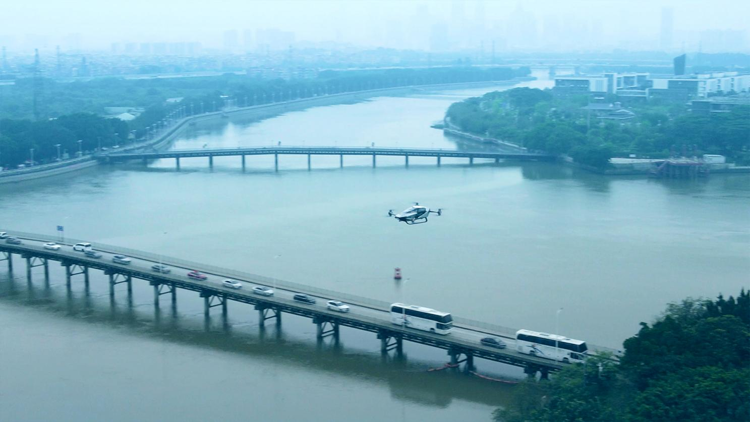 活动当天,旅航者X2在广州大学城青创汇起降点垂直起飞,在沿江绿化带绕行一圈后返回降落,全程采用自动驾驶模式。