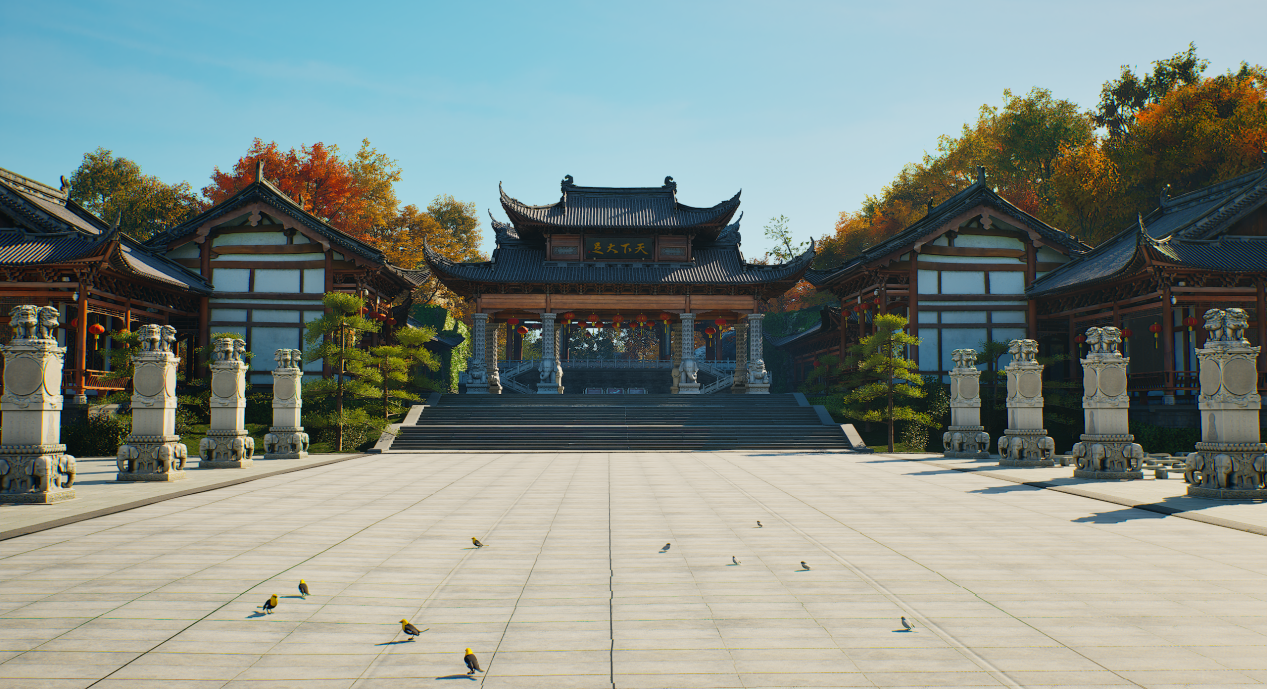 在《云游·大足石刻》中,用户将化身古人,身着精致的汉服,探访大足石刻,以高度沉浸的临场感,与古代中国雕刻艺术的璀璨明珠进行一场穿越时空的交流。参观完大足石刻,还可以在大足石刻景区自由漫步,感受光线追踪、动态天气模拟系统等前沿的数字技术带来的四季更迭与气候变幻,体验大足石刻的自然美景与人文精粹。在实时互动技术的加持下,用户还能放飞孔明灯、进行祈福抽签等非遗文化体验。