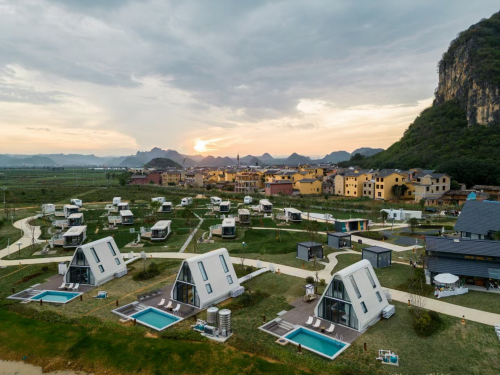 据介绍,伟光星河营地,是伟光汇通集团倾力打造的高端度假营地,通过品牌连锁服务、会员圈层运营等多种方式,满足游客的度假消费需求,目前已在全国多个城市及景区落地运营。此次开业的营地位于文山州丘北县普者黑景区西部,北倚白脸山及白脸山村,直通天鹅湖及仙人洞景区,南邻西荒湿地。项目东北及北侧均有湿地湖泊,景观资源优质。同时,营地依托普者黑固有的丰富的旅游资源,与5A级景区388平方公里的自然山水资源连为一体,凭借现有场景的山水资源优势,辅以人文田园的元素,以中国传统美学的意向,现代的手法构建和谐的营地画面。