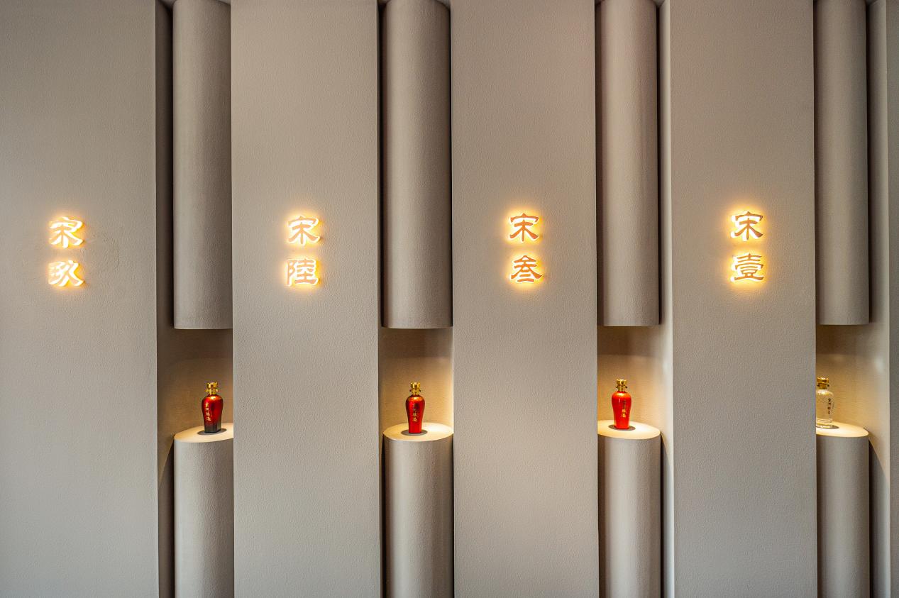 宋河酒仓,借鉴连锁餐饮零售形象店打法,打破传统白酒专卖店货架售卖,放大产品品鉴和宋河酒文化体验功能。