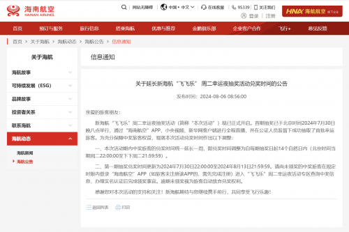 “为了充分保障中奖旅客权益,我们特别延长了‘飞飞乐’现金抽奖活动的兑奖时限,从原定的抽奖结束后的7个自然日延长至14个自然日。提醒首期抽奖活动中尚未领奖的中奖旅客,及时登录‘海南航空’APP领奖。”新海航相关负责人介绍说,“想知道自己是否中奖的旅客,也可以凭本人乘机时登记的有效身份证件号码或乘机机票票号,登录‘海南航空’APP查询;具体活动细则旅客朋友们可以通过新海航旗下11家航司官方网站等官方渠道查询了解;此外,还要特别提醒广大旅客朋友们保持警惕,请勿轻易相信不明来源的电话或短信通知,中奖信息请务必以‘海南航空’APP官方查询结果为准。”