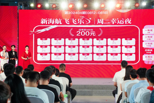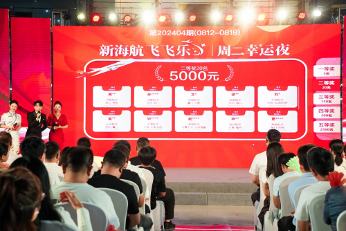 8月20日,新海航“飞飞乐”周二幸运夜现金抽奖活动第四期在海航航空集团北京基地如期举行。自本期活动开始,该活动的单期中奖名额由3063个增加至3173个,每期活动总奖金将超过62万元,相比前期增加了15万元。
