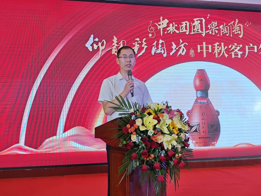 活动现场,仰韶营销公司人力资源中心总监王士飞首先对各位经销商、团购商以及核心客户多年来的支持与厚爱表示了衷心的感谢,并回顾了仰韶彩陶坊在2024上半年年中取得的辉煌成就。同时,也分享了仰韶酒业未来的发展战略和市场规划,表达了对仰韶彩陶坊在双节期间再创佳绩的坚定信心。