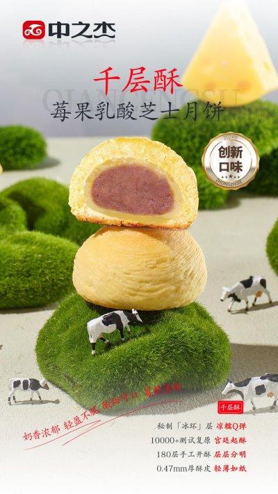 工艺亮点:中之杰的千层酥冰心月饼,其工艺创新堪称一绝。这个“千层酥”工艺是由其创始人王福胜带领研发团队花费数年时间,经过上万次试验“复活”的一门宫廷古法绝技,可以把酥皮做到每层只有0.47毫米厚,而且层层分明,并与冰心工艺相结合,这就让一块月饼呈现3种不同口感:第一口酥软,第二口冰爽Q弹,最后还有浓浓的果仁香。这款产品已获得国家认证的“千层酥专利”,一经上市就引爆市场,常常卖断货,非常受消费者喜爱。