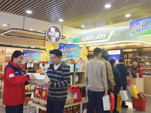 广东清远石油、汕尾石油吸引了大量顾客前来抢购,大家纷纷抢购牛奶、洗衣液、零食、大米等爆款商品,加能站内人潮涌动,场面十分火爆。志愿者及工作人员积极引导客户有序选购商品。老顾客梁大哥满脸笑意地说:“趁店庆最后两天再来囤点红酒,好喝又实惠,真不错!”
