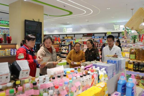 云南红河石油、昭通石油、临沧石油易捷商品销售现场顾客络绎不绝,进站加油司机、周边居民都特意前来选购,销售活动得到顾客好评,易捷商品也被顾客争相放进购物篮中。王女士开心地说道:“看见你们朋友圈这几天有‘加一元多一件’活动,怕没货了下班立马来囤了纸和洗衣液,还好都买到了,太优惠啦!”
