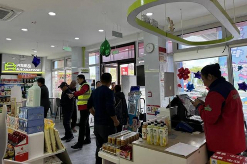 湖北咸宁石油、高管公司、黄石石油、十堰石油各加能站便利店内气氛热烈,购物场面异常火爆。进店顾客在员工和志愿者的热情引导下,根据自己的需求纷纷选购心仪的商品。“我昨天85元买了3箱纯牛奶,日期很新鲜,家人都说很划算,今天再来抢几箱。”客户谭女士情不自禁地向其他客户介绍着。