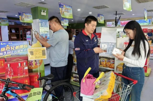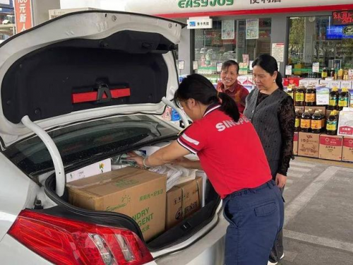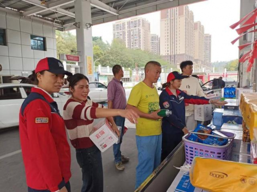 河南焦作石油、商丘石油、驻马店石油员工为顾客介绍活动商品,搭配粮油、百货商品等,介绍“加一元多一件”等优惠活动。待顾客挑选心仪的商品,排队结账后,志愿者还帮顾客送货至后备厢,热情服务受到称赞。“我购买了一些生活用品,你们的服务态度真好,活动也真的很划算!”王女士说道。