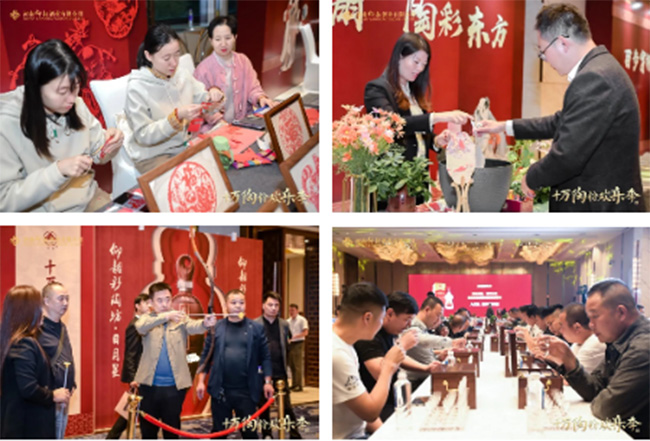 活动现场,不仅准备了投壶、射箭、剪纸、非遗漆扇等互动游戏,还设置了精彩的节目表演、产品展示、鉴酒英雄·品鉴互动等环节。在品鉴互动区,参与者通过观、闻、品、鉴,沉浸式地接触并感受仰韶彩陶坊·日月星的独特风味,深入体验仰韶酒业的精湛工艺与卓越品质。为回馈广大客户一直以来对仰韶酒业的支持,活动还精心准备了华为手机、仰韶彩陶坊1314大坛酒、飞鸽山地车等丰厚奖品,以抽奖的方式赠予在场嘉宾,极大的调动了大家的热情,整个活动现场氛围热烈。