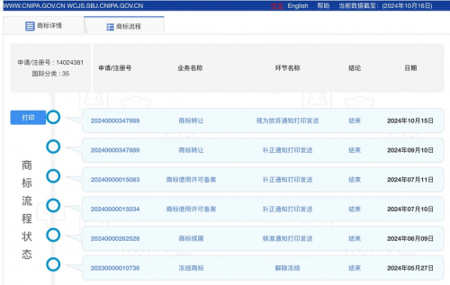 对于两家公司而言,“商战”已经持续了半年的时间,看起来似乎还没有短时间解决的希望。根据公开资料显示,懂球帝相关商标于4月26日的司法拍卖由厦门傲播公司竞得。照理说,过户早就应该完成,然而国家知识产权局查询到的公开信息(截至2024年10月16日)显示,懂球帝系列多个商标的归属仍是北京多格公司,厦门傲播公司在竞得有关商标后曾提出转让申请,但一直没有完成,最新状态显示为“视为放弃通知打印发送”。