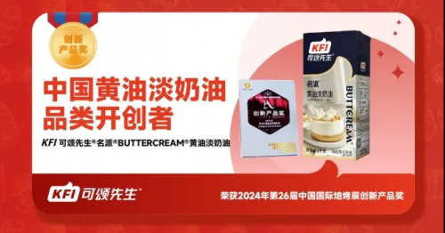 展会现场,KFI可颂集团还展示了多款UHT创新产品和即食冷冻甜品,受到观众热烈追捧。其中,KFI可颂先生®名派®BUTTERCREAM®黄油淡奶油作为黄油淡奶油品类的开创者,在第26届中国国际焙烤展上荣获“创新产品奖”。