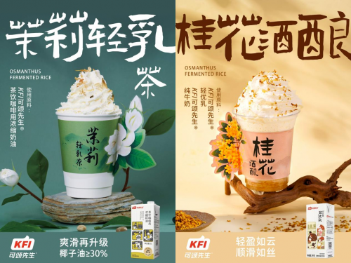 茶饮领域创新产品,KFI可颂先生®茶饮咖啡用浓缩奶油则实现了非氢化转变,采用椰子油替代传统植物油,达到0反式脂肪酸标准,引领健康饮品新风尚。饮而思®生酪厚乳则以纯正奶香、浓郁酪香及0反式脂肪酸的特点赢得健康人群青睐。