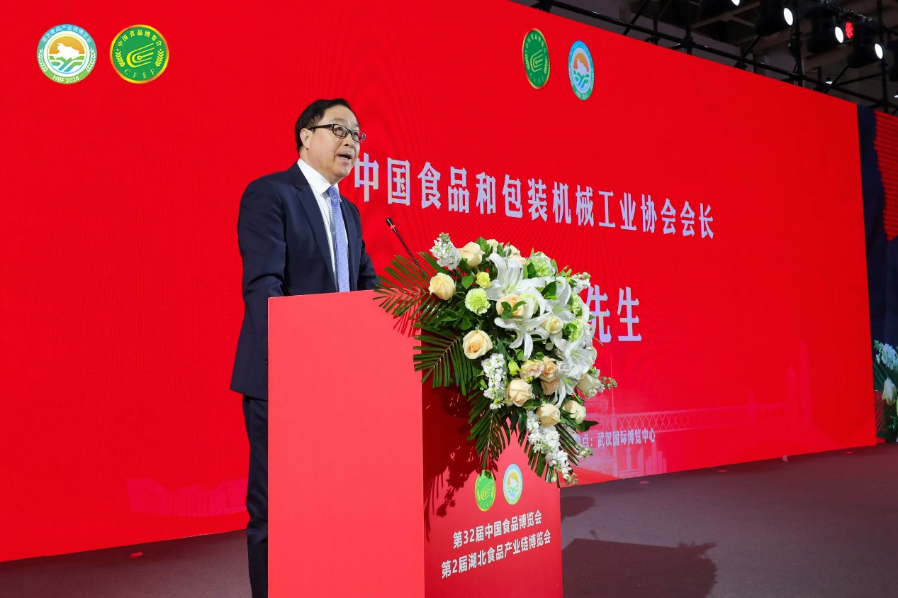 图为中国食品和包装机械工业协会会长楚玉峰发表致辞。