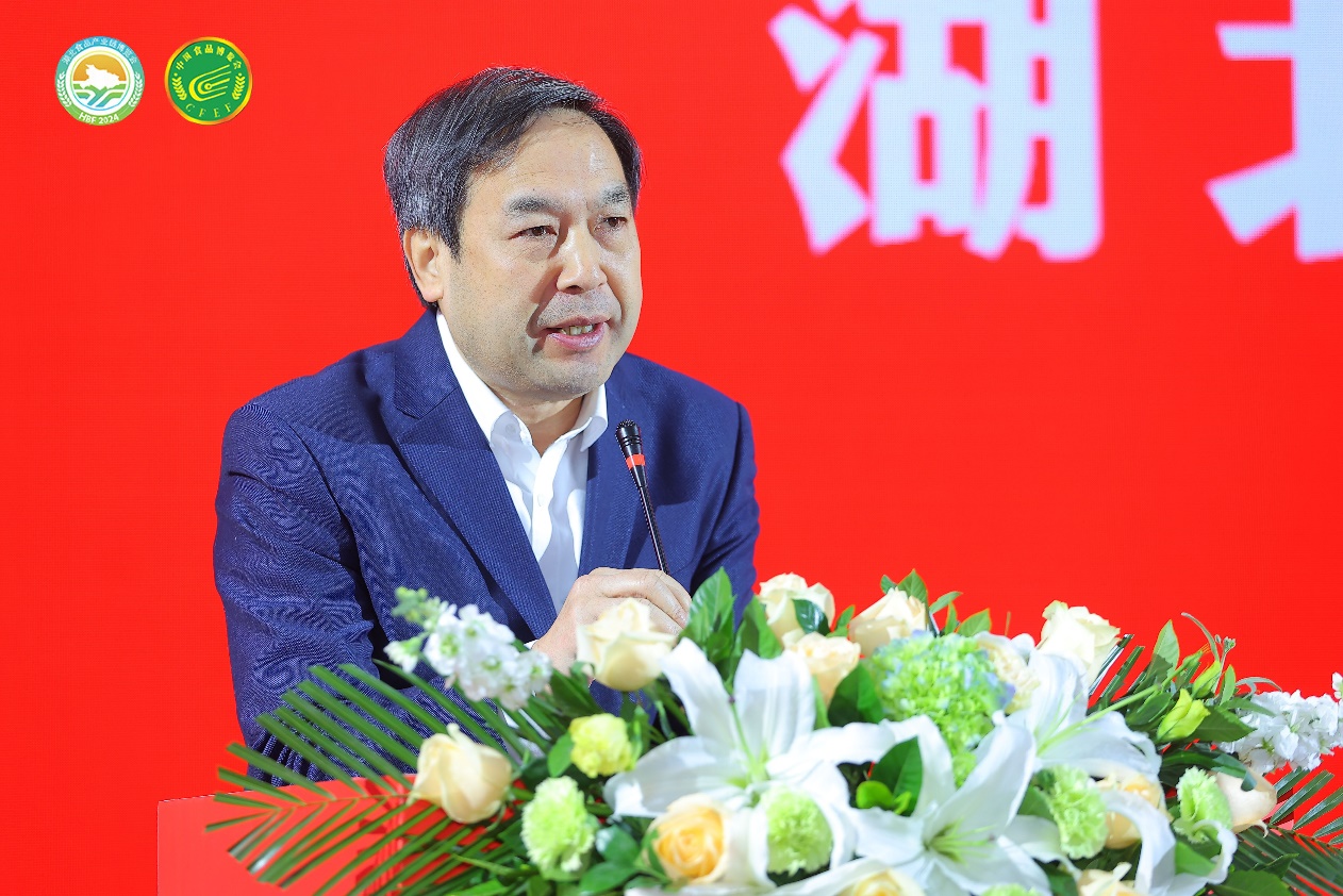 图为湖北省商务厅二级巡视员刘道伟发表致辞。
