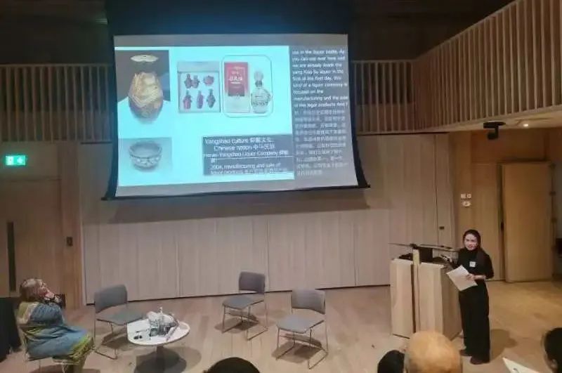 研讨会上,剑桥大学林诗婷以《贬值抑或增值?应用仰韶文化的商业品牌化和产品开发的形成与影响》为主题进行分享,详细探讨了仰韶文化是如何影响企业品牌的塑造。她还通过分析品牌元素,如品牌标志、品牌故事和视觉展示,试图揭示将文化遗产转化为可营销叙事的方法以及品牌塑造如何反过来影响人们对文化遗产的看法。