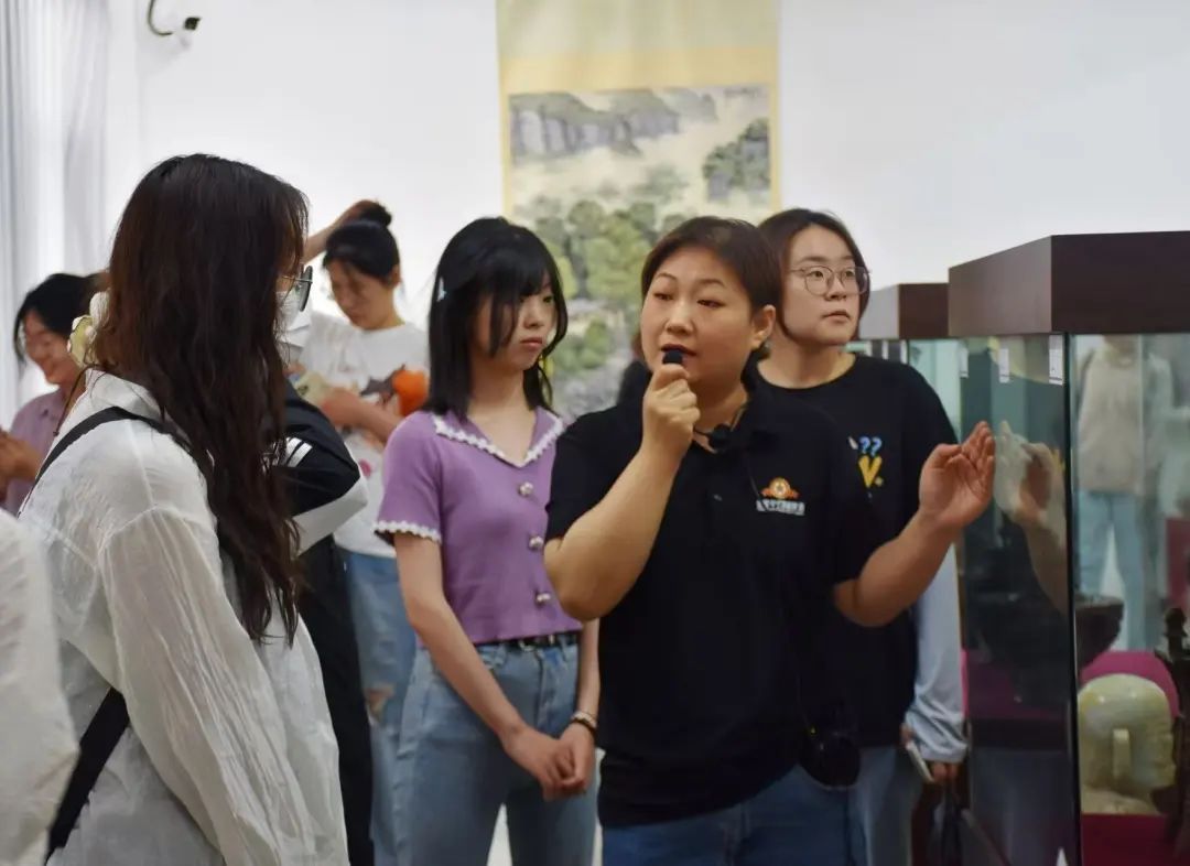 上午阳光明媚,师生们满怀期待地来到金星博物馆。该馆由集团董事长张铁山先生倾力打造,以“历史为脉,文化为魂”,搭建起古今文化桥梁。馆内2000余件青铜器与古玉藏品琳琅满目。当讲解员指出青铜爵杯与啤酒杯跨越三千年的形制呼应时,学生们瞬间领悟“守正创新”的深刻内涵,这与金星“匠心酿造”的品牌精神相映,尽显金星文化底蕴。