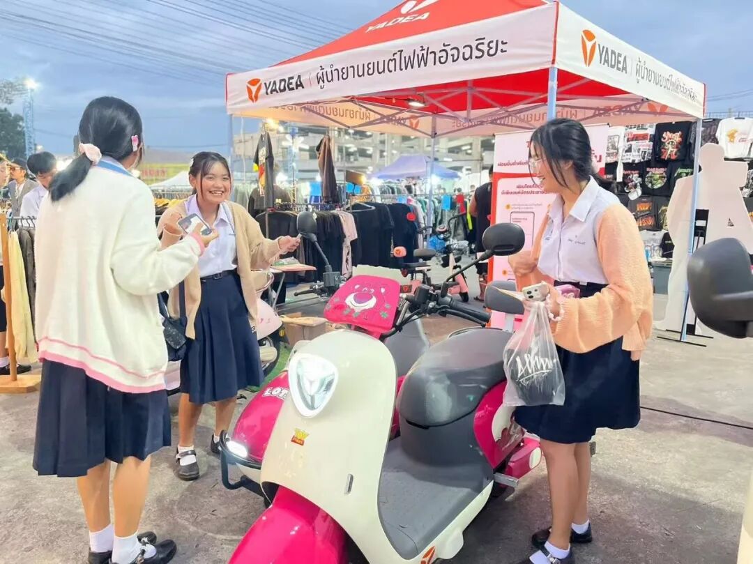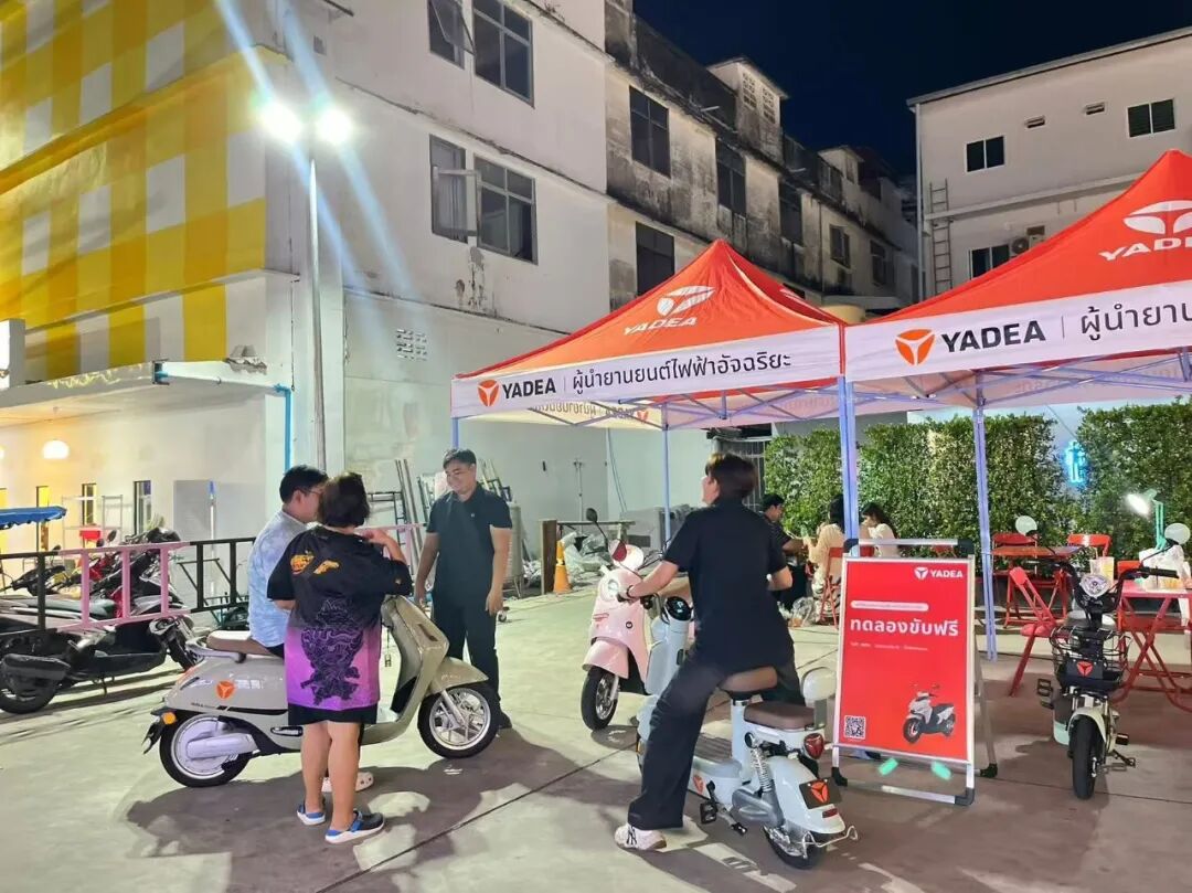 中国两轮电动车品牌在泰国的夜间户外购车点