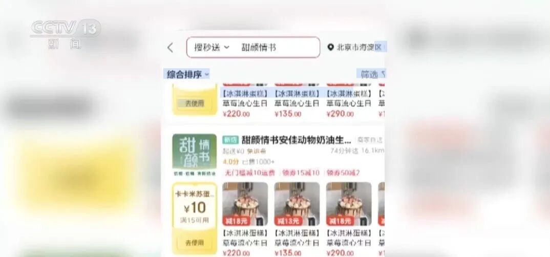 去年8月,北京市海淀区市场监督管理局在例行检查中发现,某电商平台App上一家名为“甜颜情书”的蛋糕店铺疑点重重,这家网店标注的北京市内23家实体店铺涉及全市11个区,可是其中10家店铺的食品经营许可证编号竟然完全相同。