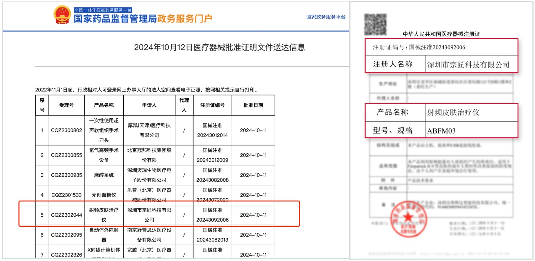 10月12日,国家药监局发布医疗器械批准证明文件送达信息,批准深圳市宗匠科技有限公司(下称宗匠科技)旗下手持式射频皮肤治疗仪的三类医疗器械注册申请,AMIRO觅光成为首批“取证”的家用美容仪品牌。