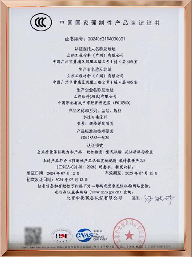践行产品质量安全承诺,立邦正式通过水性内墙涂料国家强制性产品认证