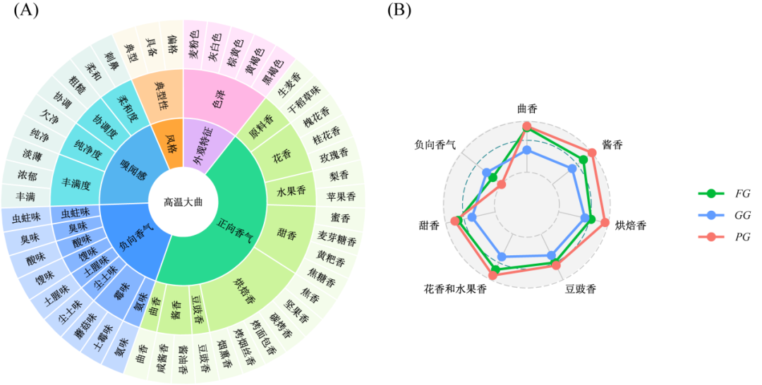 科研团队首次利用分子感官科学的方法,建立了酱香型高温大曲风味轮,发现并确定了29种关键的香气活性化合物对大曲的整体风味有贡献