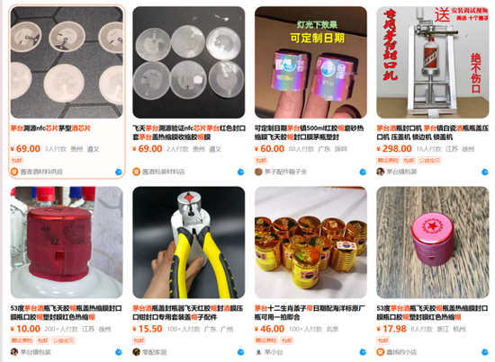 第一财经记者近期调查发现,在公安部门此前侦破的多起案件中,都出现了“真瓶假酒”的仿冒方式,而在多个电商平台上,回收茅台等名酒酒瓶已经成为热门生意,背后也隐藏着造假的隐患