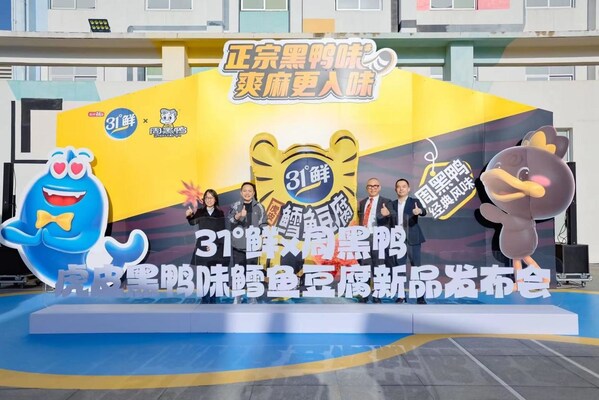 11月28日,盐津铺子旗下的海味零食头部品牌31°鲜在武汉周黑鸭工业园发布跨界联名新品--虎皮鳕鱼豆腐(周黑鸭经典风味)。这场发布会不仅是31°鲜鱼豆腐经典口味上新的重要里程碑,同时也是31°鲜和周黑鸭跨界强强联手创新新中式零食的重要一步