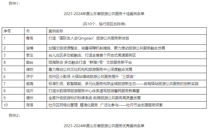 近日,山东省公布2023—2024年度旅游公共服务十佳案例和优秀案例名单。