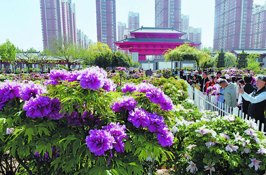 4月,山东菏泽再次迎来了一年一度的牡丹盛会。中外游客穿梭在花团锦簇中,娇艳盛放的牡丹形成花海,让人潮陶醉在花香的春风里。