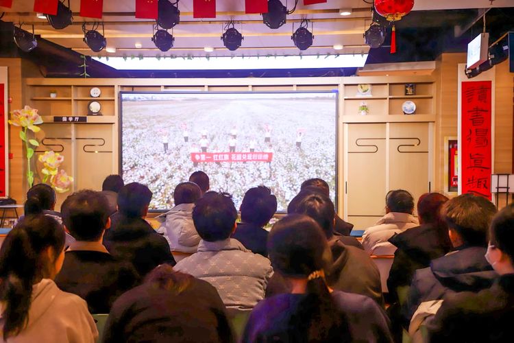 活动第一项,全体人员共同观看了农行与发改委双方助力兵团棉业发展的主题宣传片。宣传片生动展示了两家在金融服务、政策支持等方面推动农业现代化、服务兵团经济高质量发展的创新举措与成果。观看过程中,大家深切感受到银政在助力“三农”工作中的互相融合与协同发力,围绕“政银共助三农”的主题,进一步凝聚了青年以党建为引领、共同服务兵团农业发展的共识。
