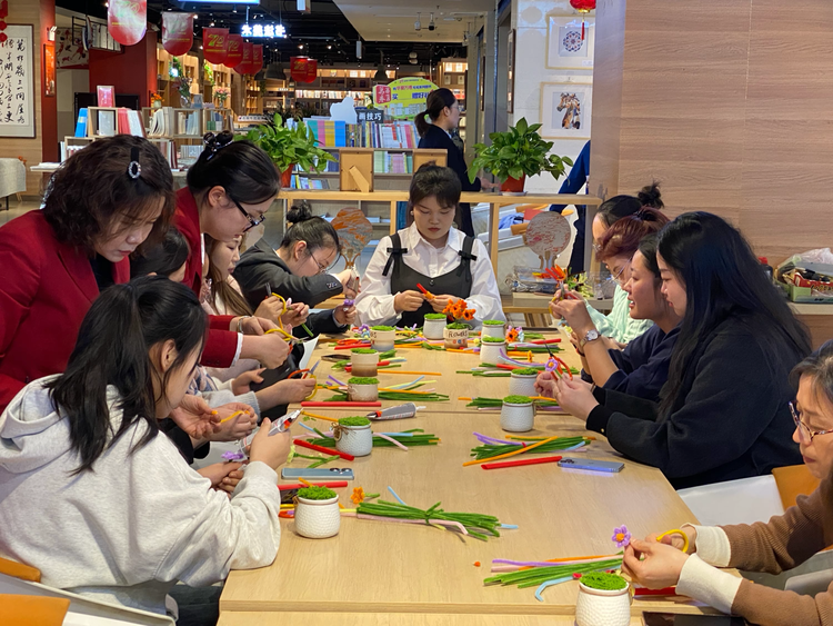 活动最后一项,青年党员们亲身体验非遗制作,在篆刻方寸与绒花指间感悟匠心、砥砺初心。在专业老师的指导下,大家分为篆刻与绒花两组,静静俯首,专注创作。篆刻刀下,每一道刻痕都凝聚着对使命的铭记;指尖绒线,缠绕的花朵中寄托着对美好的向往。制作过程中,大家互相切磋技艺、交流心得,在协作中深化默契,在静谧中沉淀思考。一件件融合红色元素与传统技艺的作品逐渐成型,方寸之间,将百年非遗技艺与新时代党建精神、红色文化有机融合。