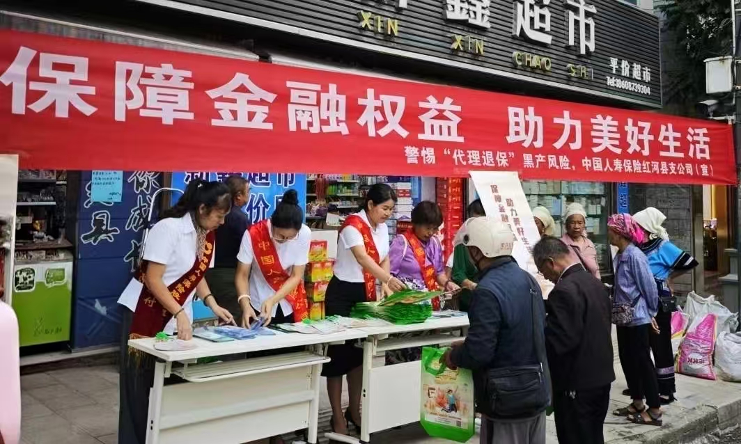 2025年9月18日,在国家金融监督管理总局红河监管支局指导下,中国人寿红河县支公司在红河县跑马路农贸市场门口,成功开展了以“保障金融权益,助力美好生活”为主题的金融知识宣传活动
